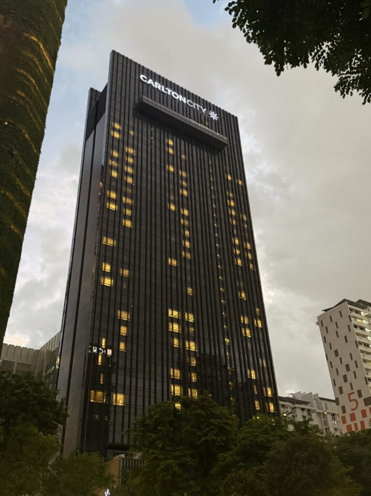 シンガポールに到着したのは12日の夕方。今回は「カールトン・シティ・ホテル・シンガポール」に宿泊しました。空港から1時間ほどで到着し、駅の目の前という好立地なのですが……自他ともに認める方向音痴な私。ホテルの周りをぐるりと一周して、ようやくエントランスに辿り着きました(笑)。
